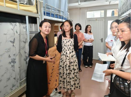 9月14日下午,院党委书记刘培军带领学院领导班子成员、全体新生班主任及辅导员深入2025级新生宿舍,看望慰问刚刚入校的新同学,详细了解新生入学适应情况,并为他们送去学院的温暖问候与深切关怀。