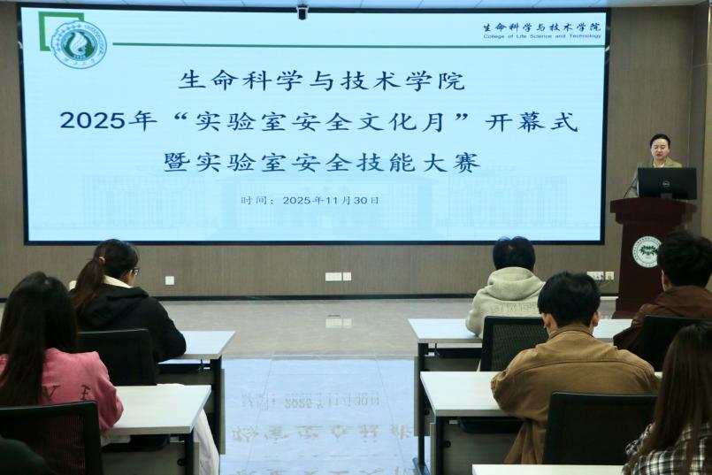 为加强师生实验室安全意识,提升安全操作技能与应急处置能力,11月30日上午,我院在北107教室举办生命科学与技术学院2025年“实验室安全文化月”开幕式暨实验室安全技能大赛,学院党委副书记覃文月出席活动并致辞。本次实验室安全技能大赛共吸引32支队伍、90余人报名参赛,大赛由覃健强老师主持。