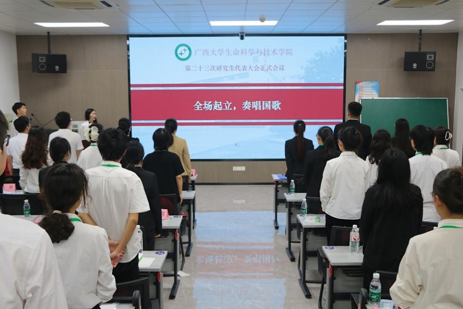 11月9日下午,我院第二十三次研究生代表大会正式会议在学院106室顺利召开。学院党委副书记、纪委书记覃文月,团委书记马奕,团委副书记贺超,学工组辅导员关家运,广西大学研究生会代表,兄弟学院研究生会代表以及我院各班级代表出席本次大会。大会由学院第二十二届研究生会执行主席卢晓敏主持。