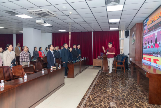本次党课打破传统宣讲模式,以“音乐+理论+实践”的形式,构建“听—思—悟—行”四维沉浸式教育体系,将理论阐释与艺术鉴赏有机融合,让廉政教育更具感染力。课上,《唱支山歌给党听》《三大纪律八项注意》《公仆赞》等经典曲目轮番呈现,深情的演绎、激昂的旋律搭配贴合主题的视频画面,将抽象的廉政理念转化为可感可知的艺术体验。尤其是《保卫黄河》《瓦西里的故事》等承载着红色记忆的作品,让在场党员在重温经典中感悟初心使命,在艺术熏陶中强化廉洁自律意识,充分彰显了创新教育形式的良好成效。